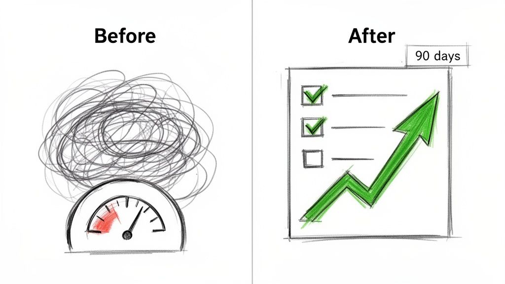 This approach is one of the most compelling linkedin carousel post examples for personal brands, coaches, and founders. Instead of just telling your audience what you can do, you are showing them through a relatable journey of struggle, discovery, and triumph. This narrative arc captures and holds attention far more effectively than a simple list of features or benefits.