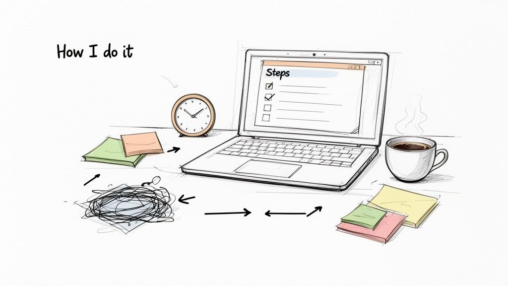 Start by brainstorming common questions or challenges your audience faces. Group your advice into a logical, numbered list. For maximum impact, lead with your most surprising or counterintuitive tip on the first slide to hook the reader immediately. Use a consistent design template with large, clear headings for each tip, and complement the text with a relevant icon or simple visual on each slide. For more ideas on structuring your content, exploring different formats can help you determine what to post on LinkedIn to best engage your audience. End the carousel with a question to spark conversation in the comments.